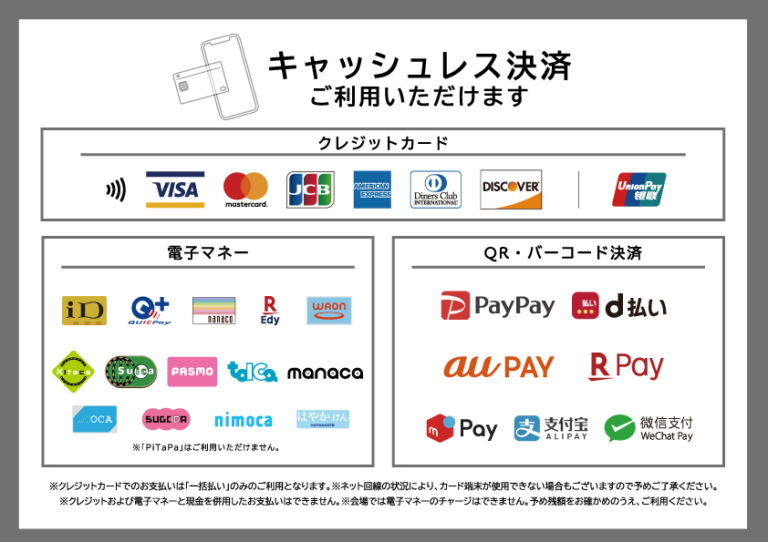 ※電子マネーは会場でのチャージができません。必ずチャージしてからの決済にご協力ください。